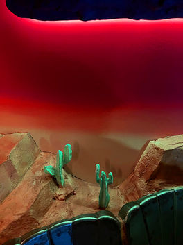 A series of small painted sculptures hand-built with a claylike material. Jaelah was a part of the Desert Trailer team overseeing aesthetic vision and color schemes. Lead Artist Geoff Banzhoff in collaboration with Artist Sofia Howard.